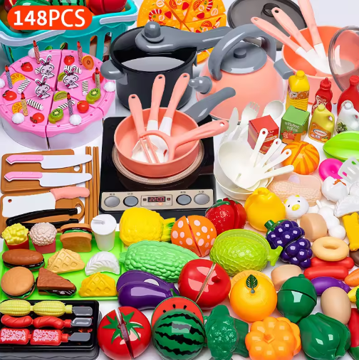 ألعاب الطبخ الوردي مجموعات الالعاب المطبخ فتاة ألعاب للأولاد قطع الفاكهة الخضار البيتزا التظاهر اللعب محاكاة ألعاب التعليم المبكر للأطفال