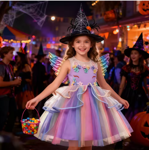 حالمة فتاة التطريز بلا أكمام يونيكورن شبكة فستان الأميرة مع الشعر هوب الجناح للأطفال أداء الحفلات هدية عيد ميلاد 2-10T