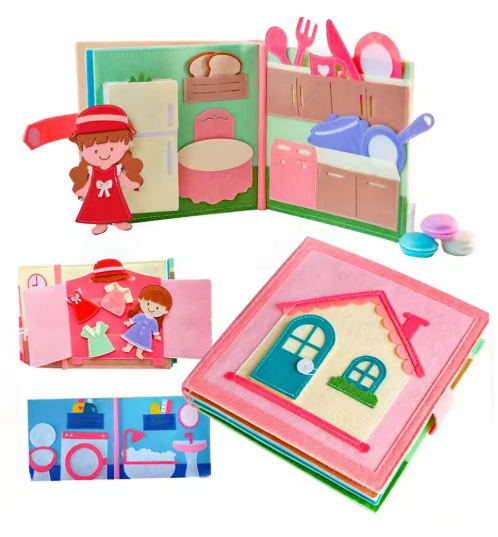 كتاب اللباد الهادئ لوحة مونتيسوري الحسية المزدحمة للنشاط المبكر كتاب تعليمي بيت الدمية الصغيرة كتب اللباد اليدوية للسفر