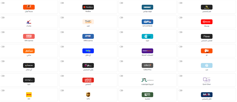 كما يمكن كما هو ظاهر في الصورة تعطيل أي شركة شحن عن العميل إن رأى التاجر ان الشركة غير مناسبة او اسعارها مرتفة او يوجد مشاكل عليها